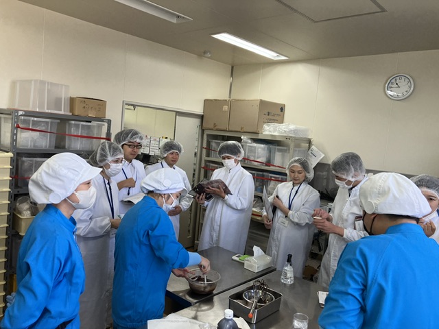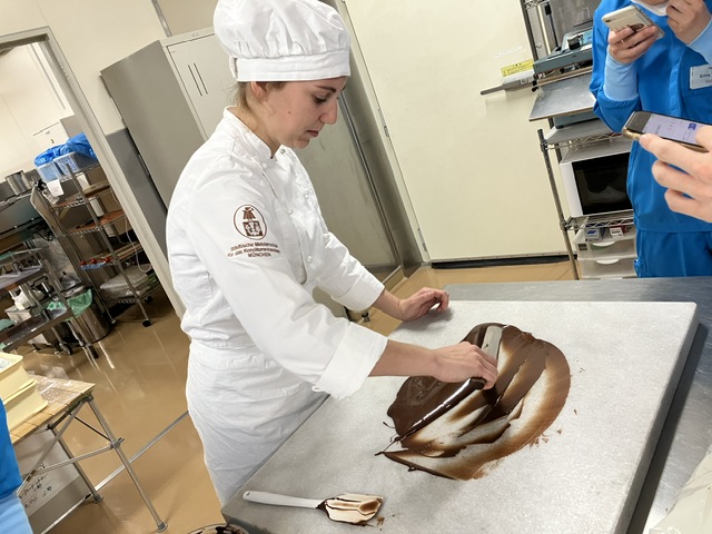 実習ではチョコレート作りや東京フード製品を使ったパン・菓子の試作を体験してもらいました。普段の仕事では経験できないチョコレート作りは特に好評で、当社研究員の華麗な技やチョコレートの奥深さを体験してもらいました。